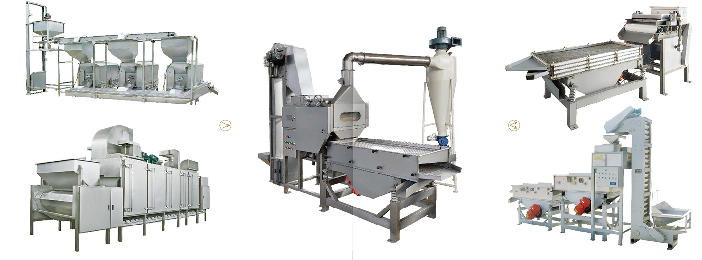 該生產(chǎn)線是將烘烤后的堅果去皮,進行不同粒度的切碎分級的加工設(shè)備;如:花生碎、核桃碎等。還可用于各種干燥后的果蔬類、餅干類等切碎切粒,廣泛用于各種糕點、餡料、調(diào)味品等產(chǎn)品。